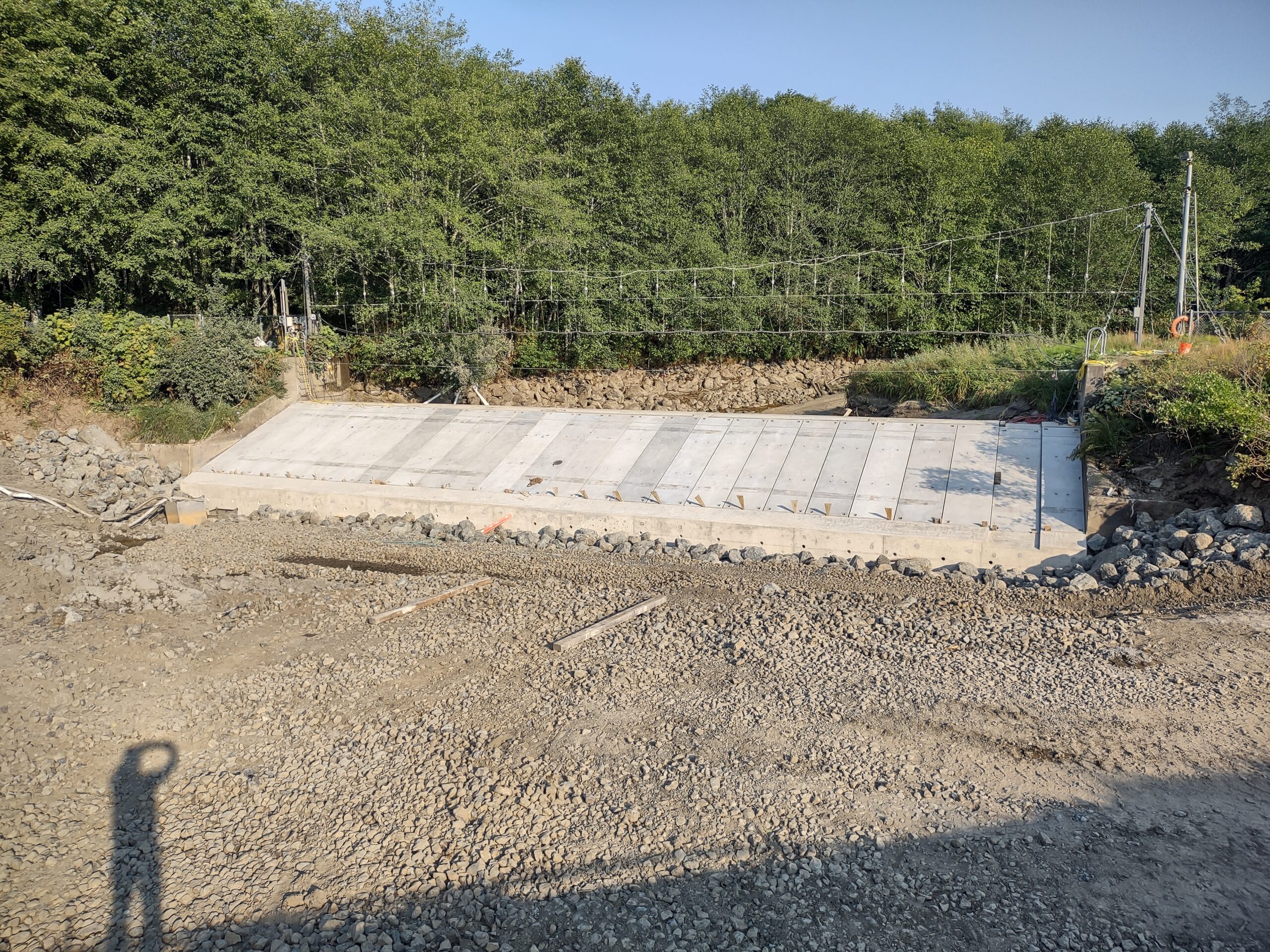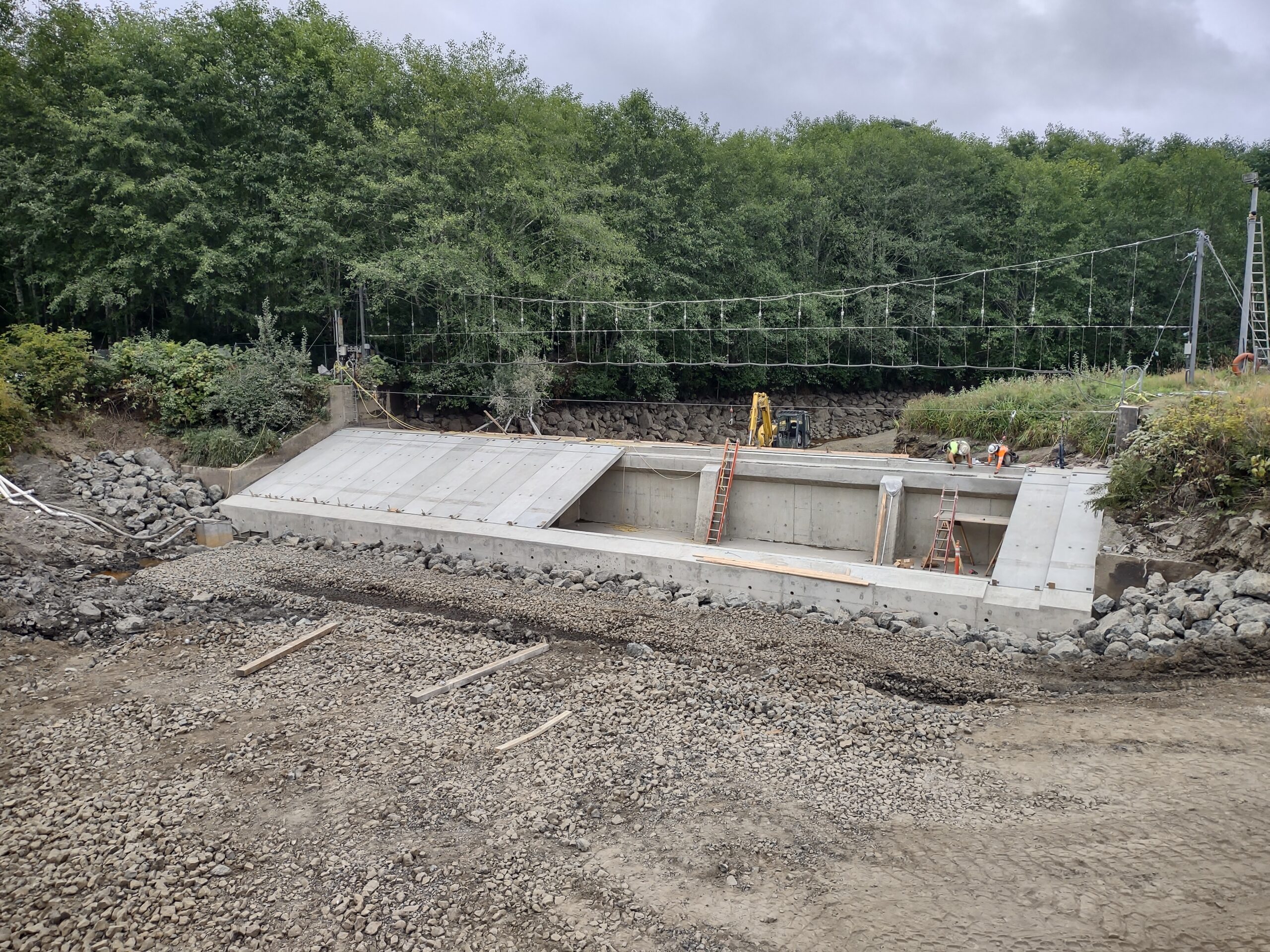 The key benefit is that fish will be much more effectively attracted into the ladder and guided to the hatchery, improving both fish collection for hatchery operations and overall passage for native species. The new concrete structures will last far longer than the old timber components, reducing future maintenance needs. Combined with riprap armoring, revegetation, and channel restoration, the project protects the river environment while supporting the conservation goals of both the U.S. Fish and Wildlife Service and the Makah Tribe’s fisheries program.